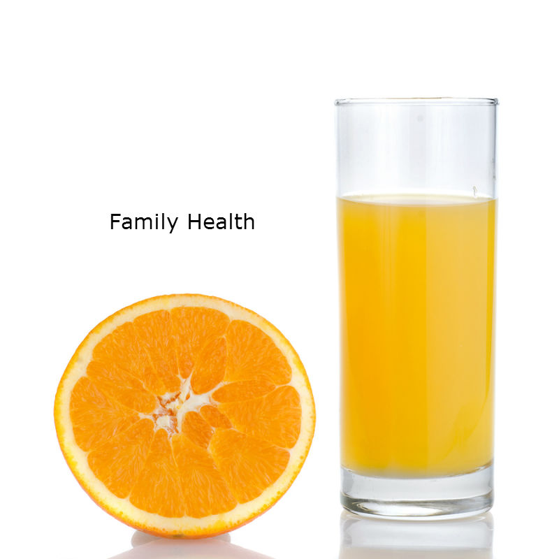 Don’t get calories from beverages. It’s so easy to swig down 12 ounces of 100% juice, but that juice has about 180 calories—a good portion of daily calorie needs. A navel orange on the other hand has 70 calories, 3 grams of fiber and requires chewing. Better to eat your calories and drink water.