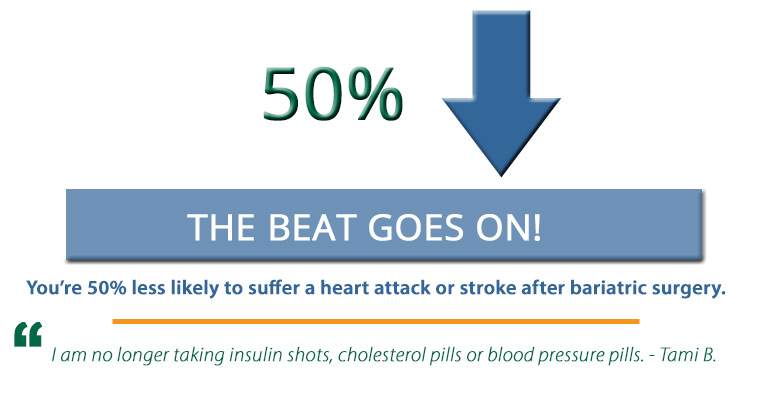 You’re 50% less likely to suffer a heart attack or stroke after bariatric surgery.
