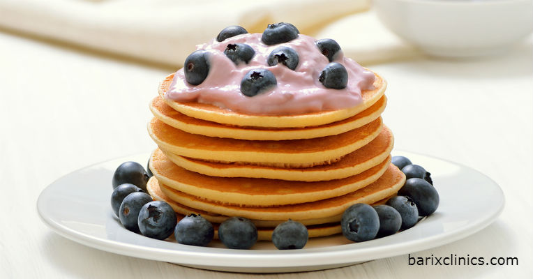 - Out with the syrup and in with fresh fruit and/or low-sugar yogurt toppings.