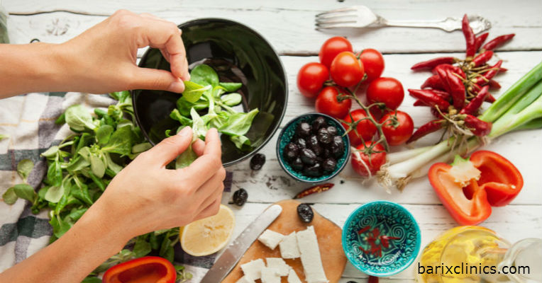 Start with a small bed of dark leafy greens. Top with lean protein like chicken breast, shrimp, tuna, or trimmed steak. Jazz it up with crunchy vegetables full of nutrients, taste and fiber. Top with a smidge of your favorite yummy, yet calorie-dense, ingredient. Finally, carefully top off your creation with dressing – dip your fork first in the dressing and then the salad to flavor with a lesser amount. Get creative and explore new flavors with each salad.