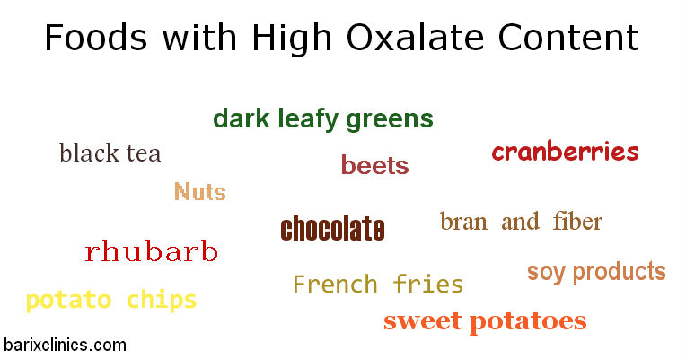 Limit or manage the intake of foods high in oxalate. Oxalate is more readily absorbed after gastric bypass surgery and later has to be excreted in the urine. Many foods contain small amounts of oxalate and it is impossible to avoid oxalate altogether. It does make sense to limit your intake of foods that contain a high concentration of oxalate. Another option is to manage the absorption of high oxalate foods by pairing them with calcium-rich foods. This will cause the oxalate to bind with the calcium in the intestine, preventing absorption. Food high in oxalate include black tea, nuts, dark leafy greens, rhubarb, beets, chocolate, sweet potatoes, cranberries, soy products, potato chips, French fries, bran, fiber-containing cereals and chocolate.
