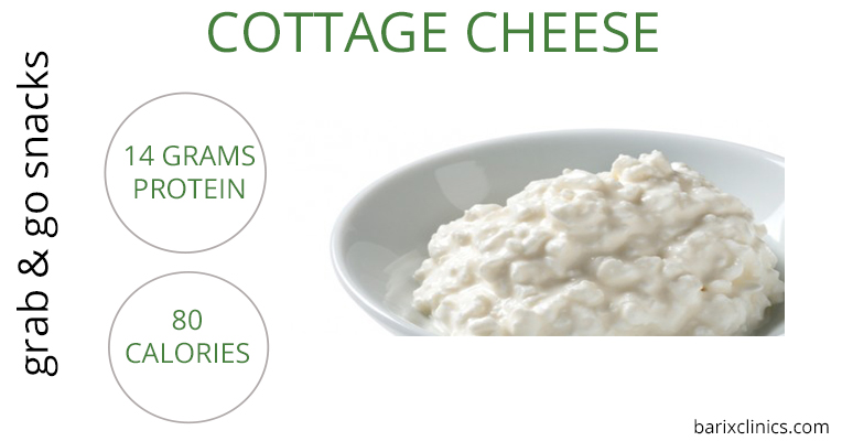 1/2 cup of 4% fat cottage cheese provides 12-14 grams of protein and 120 calories.