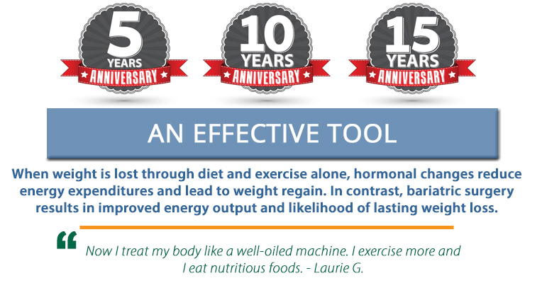 When weight is lost through diet and exercise alone, hormonal changes reduce energy expenditures and lead to weight regain. In contrast, bariatric surgery results in hormonal changes that improve energy output and the likelihood of lasing weight loss.