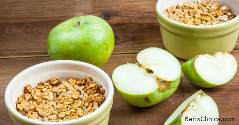 Mix together apple juice, cinnamon, 1/2 cup Splenda. Soak apple slices in this mixture for 20 minutes. Cook oatmeal as directed on package. Stir in ½ cup Splenda to cooked oatmeal and set aside. Place apple mixture in the bottom of a baking dish, top with oatmeal. Bake for 20 minutes at 350 degrees F or until oatmeal is crisp. Makes 12 servings.