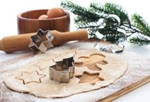 Remove dough from refrigerator and roll out on a floured work surface to desired thickness, approx. 1/4 inch. Cut with cookie cutters. Place cookies on prepared sheet.