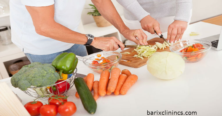 Plan out meals and snacks for the week ahead. Shop and do a little prepping–cut up veggies, pre-cook meals and portion out snacks. This takes the guesswork out of it and makes meals and snacks a breeze.