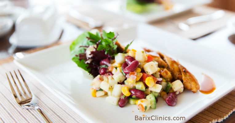 When we’re served large portions, we tend to eat more. At home, you can get in the habit of serving right-sized portions on smaller plates to your family and avoid excessive calories.