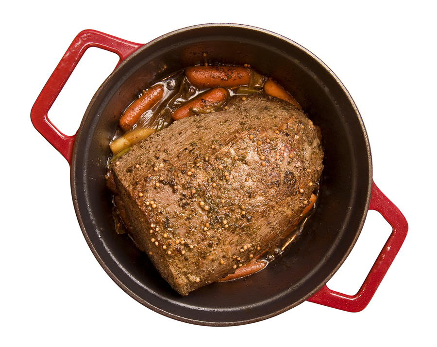Season the chuck roast with salt and pepper to taste. Brown on all sides in a large skillet. Place in the slow cooker and add the soup mix, water, carrots, onion, potatoes and celery. Cover and cook on the low setting for 8 to 10 hours. Makes 12 servings.