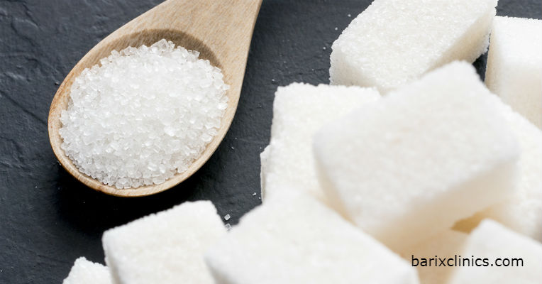 The average person eats 75 grams of added sugar each day–visualize 19 teaspoons, 6 tablespoons, or 2/5 of a cup. Keep in mind that this figure doesn’t include the sugar that is naturally occurring in fruits, vegetables and dairy products–just all the sugar that has been added to foods and beverages.