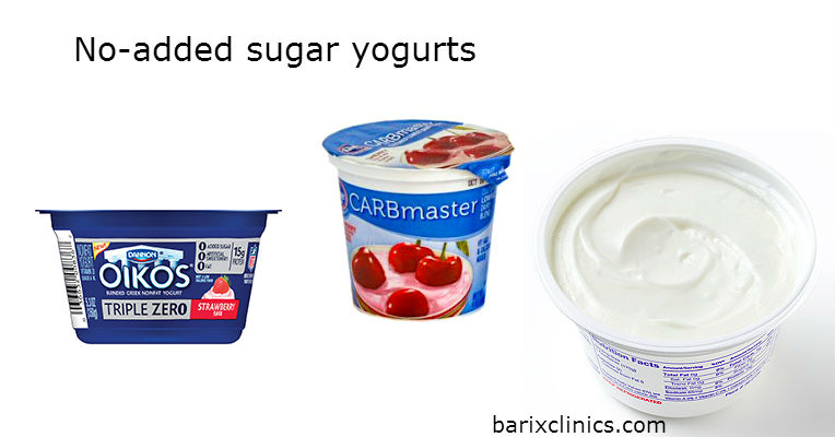 Plain (unflavored) Greek Yogurts of any brand are a good option. Stir in baby food fruit or your favorite non-calorie sweetener to taste. For an extra 23 gram protein burst, stir in a scoop of fruit-flavored Nectar Protein powder.